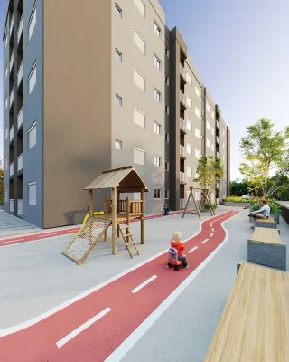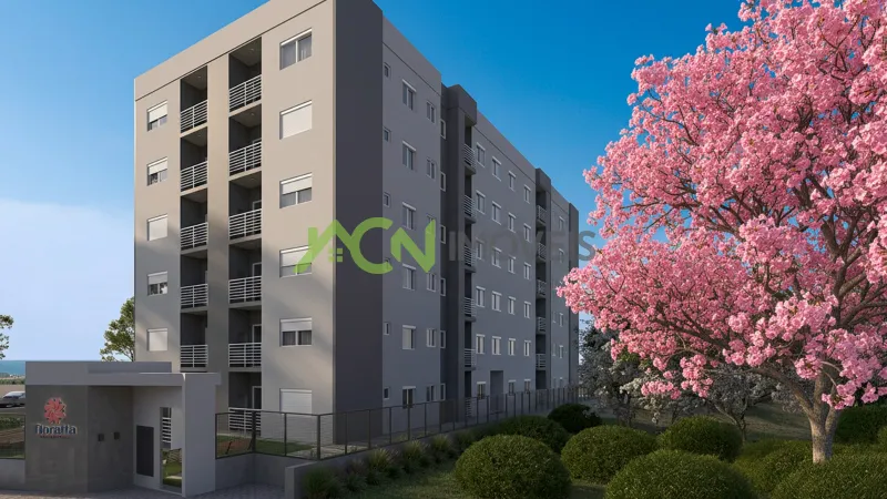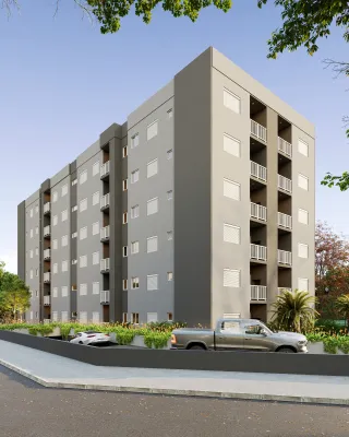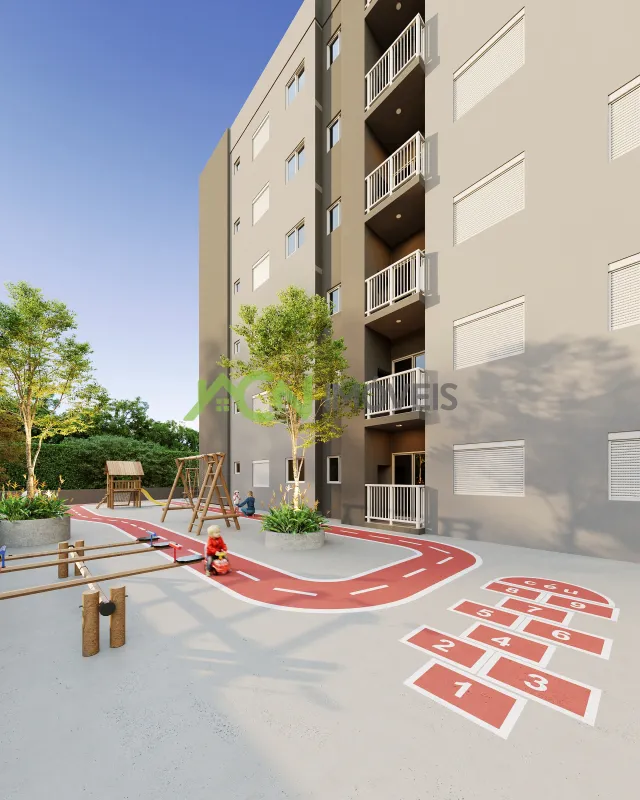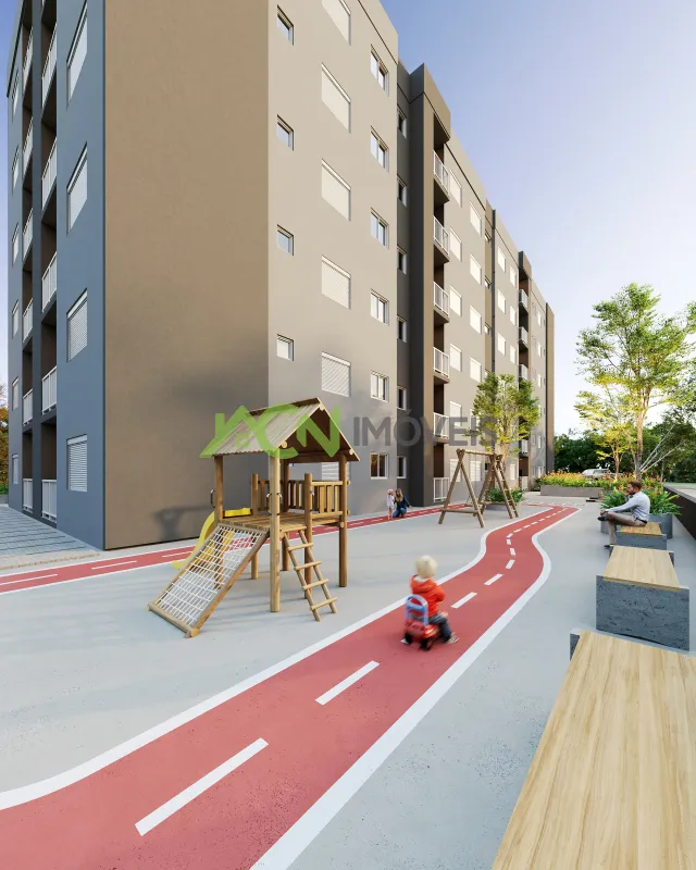Apartamentos com 2 (dois) dormitórios, sala e cozinha integradas, sacada com churrasqueira, um banheiro social e vaga degaragem coberta.