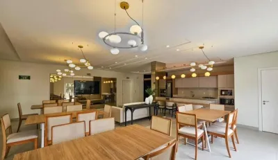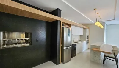 Sacada ampla com 15,00m², churrasqueira e guarda corpo de vidro, pra você curtir a linda vista!