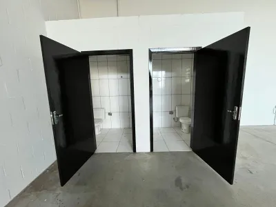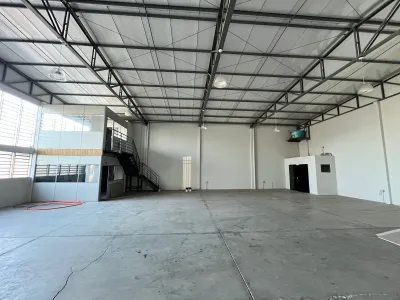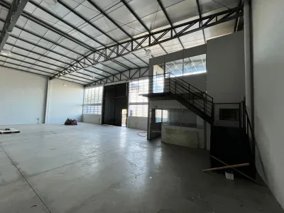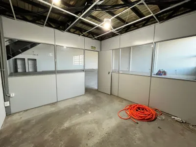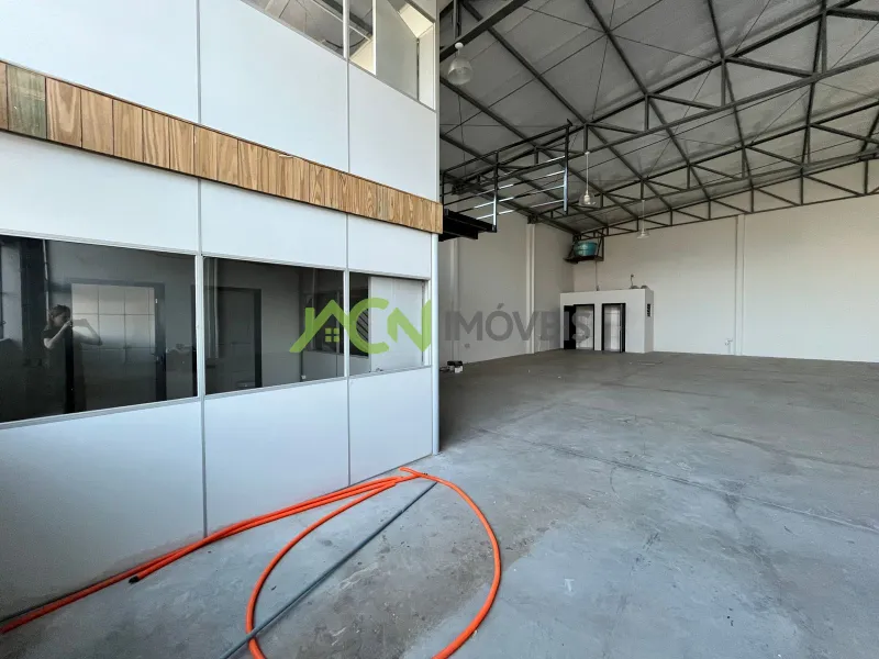 450,00m² de área construída O prédio ampla área interna Mezanino com 2 ambientes, e um banheiro 5 banheiros no total Piso industrial, resistente para empilhadeiras e maquinário em geral Possui cerca elétrica e portão eletrônico Telha sanduíche Parte elétrica já instalada para maquinário 2 acessos: um para o escritório, e outro para a produção DISTÂNCIAS