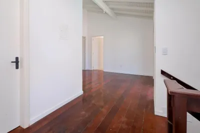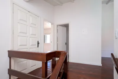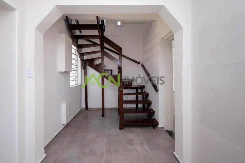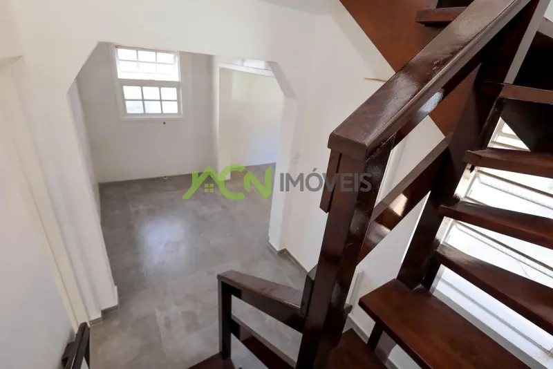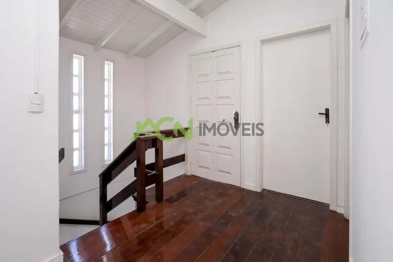 Escadaria e sala superior em madeira nobre, com acabamento impecável