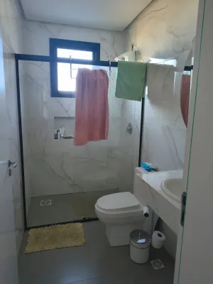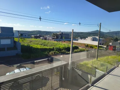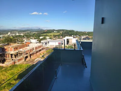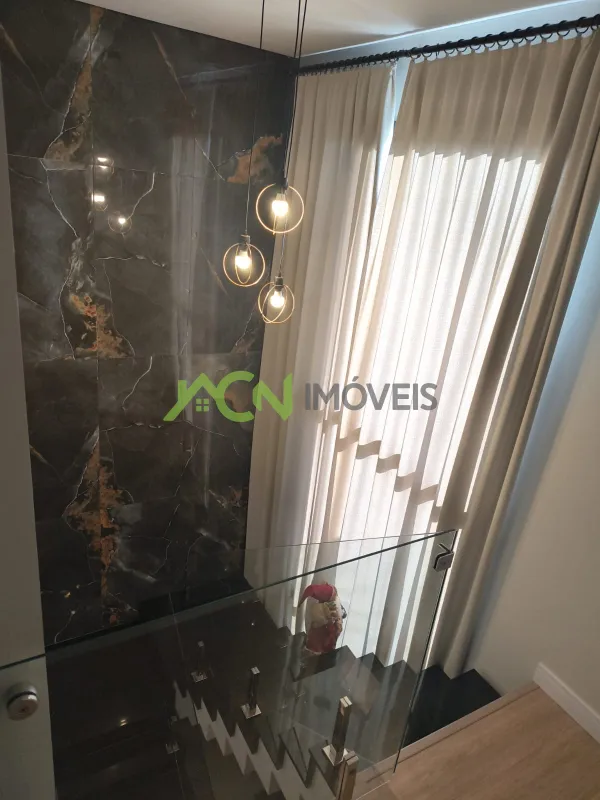 - No pavimento superior: 3 dormitórios, sendo 1 suíte com closet e banheiro privativo, além de 1 banheiro social, sacadas e terraço.