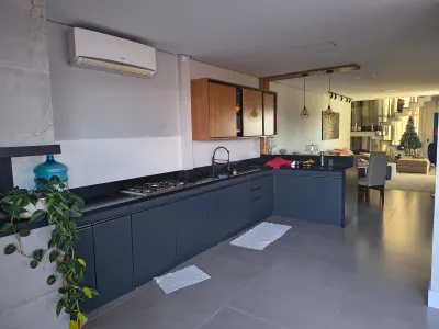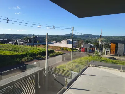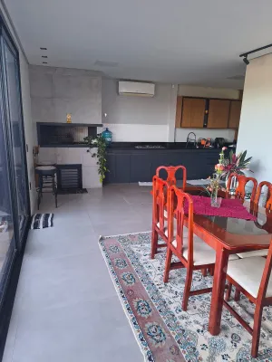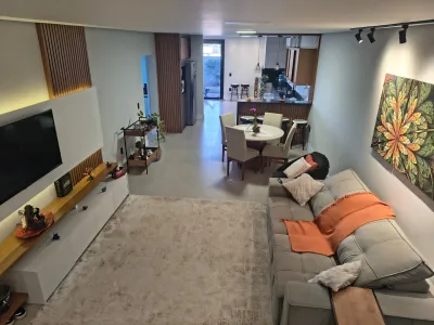 - No térreo: garagem coberta para 2 veículos + 2 vagas externas, estar/jantar/cozinha integrados ao espaço gourmet com churrasqueira, jardim com possibilidade de piscina, 1 dormitório (ou escritório), banheiro social e lavanderia.
