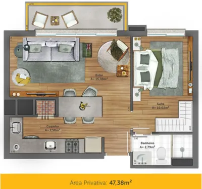 Apartamento semimobiliado no Yellow Residence, em Porto Alegre, zona leste da cidade, próximo à PUCRS e imediações com os bairros Jardim Botânico e Petrópolis.