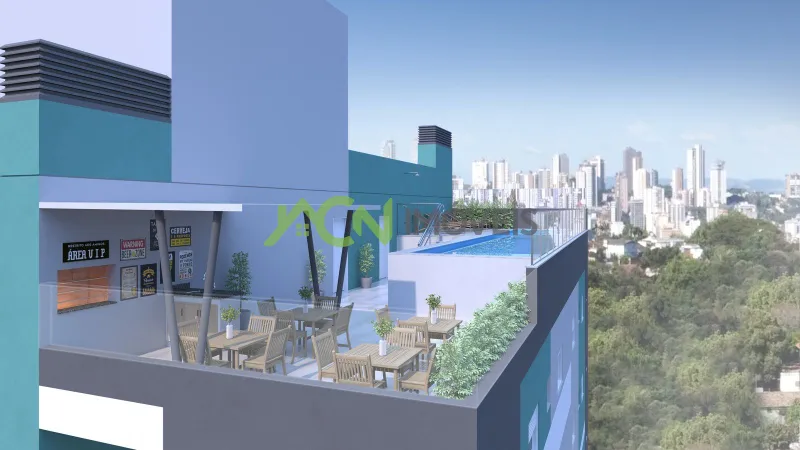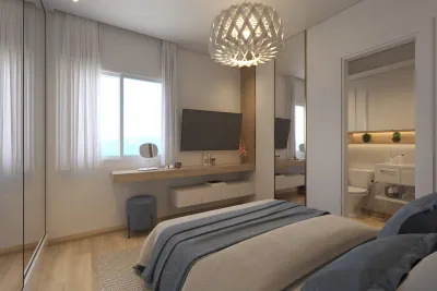 Roooftop com salão de festas Deck solarium Piscina adulto e infantil (2,90 x 14,00) Quiosque gourmet 2 elevadores Bicicletário Pet place Vagas de visitante Guarita Hall de entrada Academia Playground Quadra de areia infantil Painéis fotovoltaicos para o condomínio
