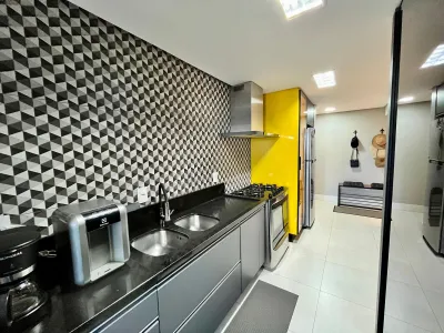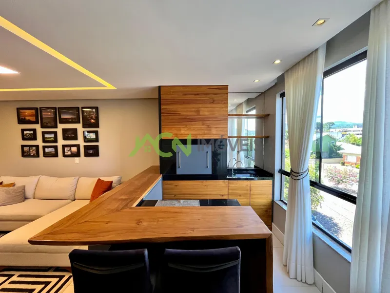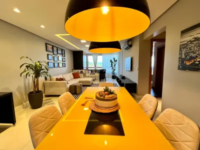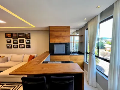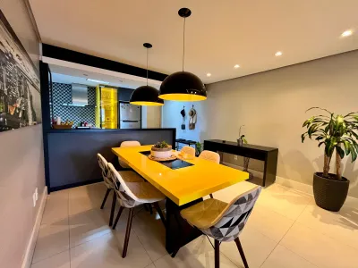 • Sala de estar e jantar e cozinha em ambientes integrados