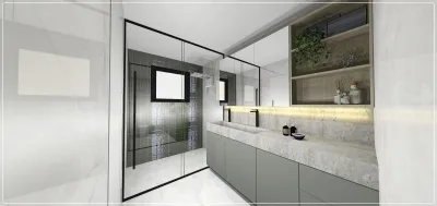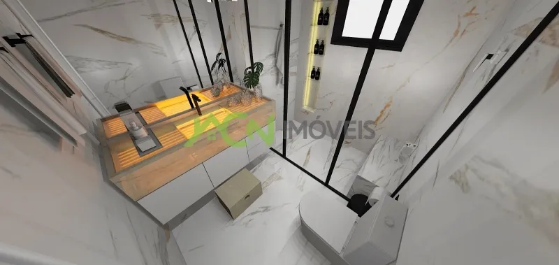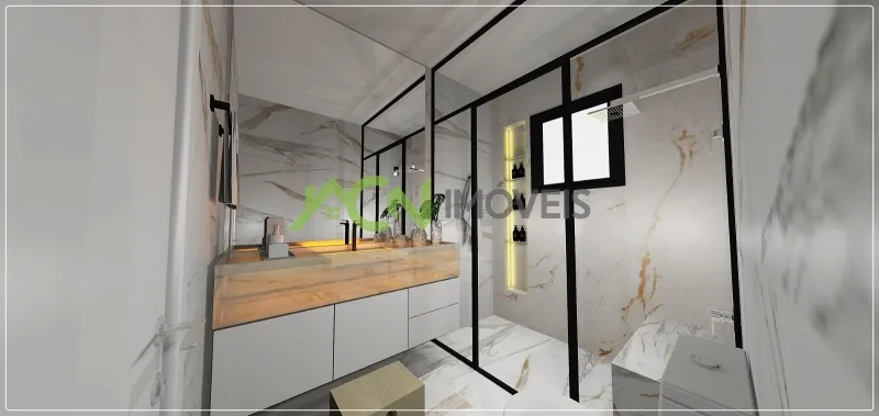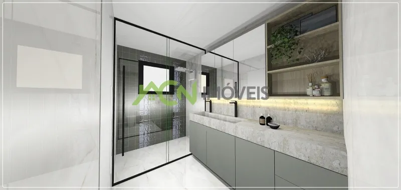 O imóvel ainda dispõe de acabamentos de alto padrão, persianas automatizadas, espera para ar-condicionado, infraestrutura para energia fotovoltaica e esquadrias em alumínio preto.